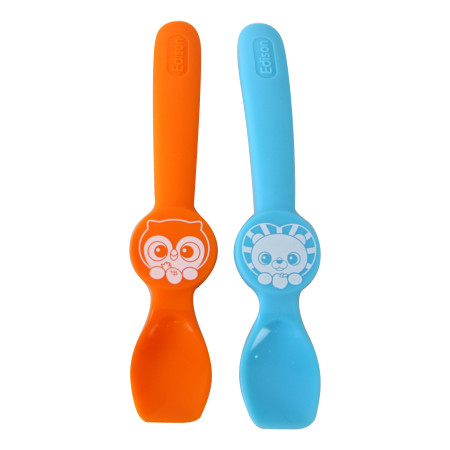 Set 2 thìa Silicon Edison hình Cú, Sư tử được sản xuất bằng chất liệu silicone siêu mềm cao cấp, dễ uốn cong, vệ sinh và đảm bảo an toàn cho bé.
